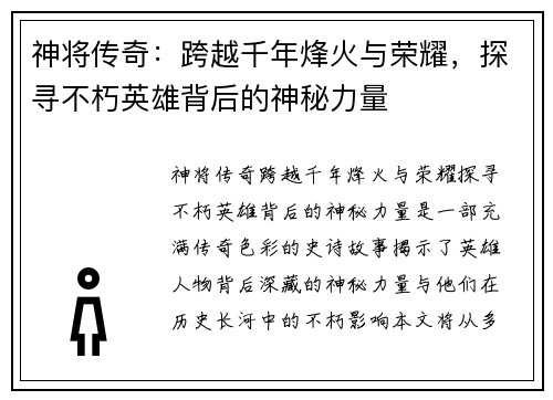 2025-07-21 14:16:43文章摘要:英雄,作为社会和文化的象征,往往被理想化为无所不能、勇敢无畏的存在。然而,英雄背后往往隐藏着巨大的孤独与牺牲,这种牺牲不仅仅体现在肉体上的付出,更多的是精神上的重担。英雄在履行责任和使命时,所承受的压力、孤独感以及道德上的困境,构成了他们心灵深处无法言说的痛苦。本文将通过四个方面探讨英雄的...